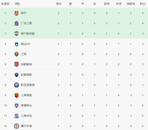 隨著海港11絕平廣島,蓉城10,亞冠最新積分榜:中超球隊奪首勝