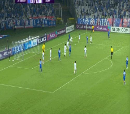 第74分鐘,申花再失良機。特謝拉妙傳,阿蘇埃單刀直面門將射門被封堵。
