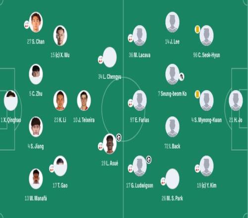 后衛(wèi):4-徐名寬、17-古斯塔夫·盧德維格松(81'2-趙玹澤)、19-金英權(quán)(81'15-鄭升炫)