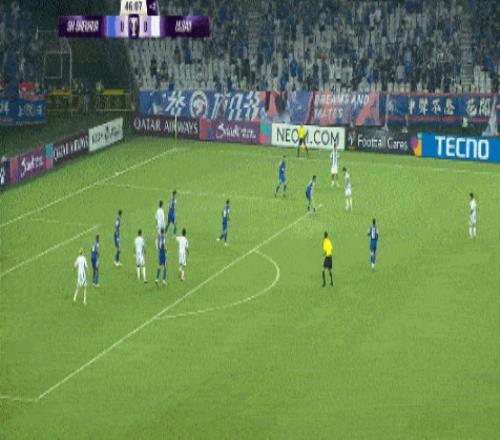 第33分鐘,吳曦中圈長傳身后,阿蘇埃搶到一點球后,被摔倒的蔚山HD球員帶倒,主裁拒絕判罰點球。