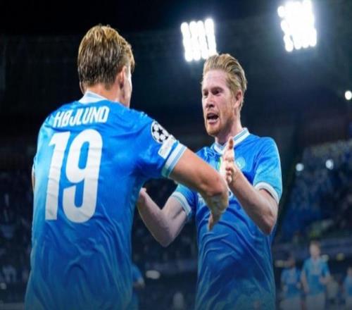 主場作戰(zhàn)的那不勒斯在第36分鐘取得領先。德布勞內(nèi)帶球反擊,隨后送出手術刀的直塞,霍依倫單刀破門。第62分鐘,葡體依靠點球扳平了比分。第79分鐘,德布勞內(nèi)左路傳中,霍依倫頭球破門,2-1!
