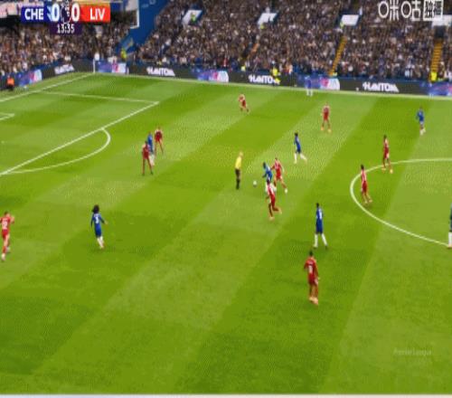 范戴克在圖中做出了“撅臀”的動作,意圖封堵凱塞多的射門,但由于防守位置過于靠后,對凱塞多的射門完全未形成干擾。
