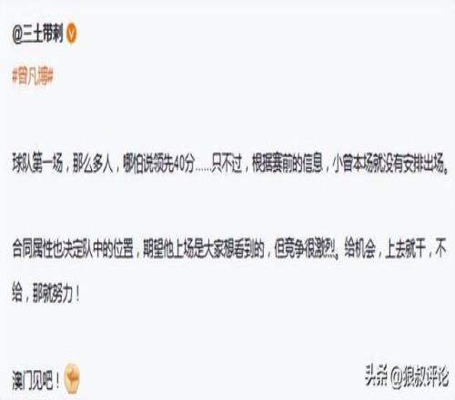 球隊(duì)第一場(chǎng),那么多人,哪怕說(shuō)領(lǐng)先40分......只不過(guò),根據(jù)賽前的信息,小曾本場(chǎng)就沒(méi)有安排出場(chǎng)。