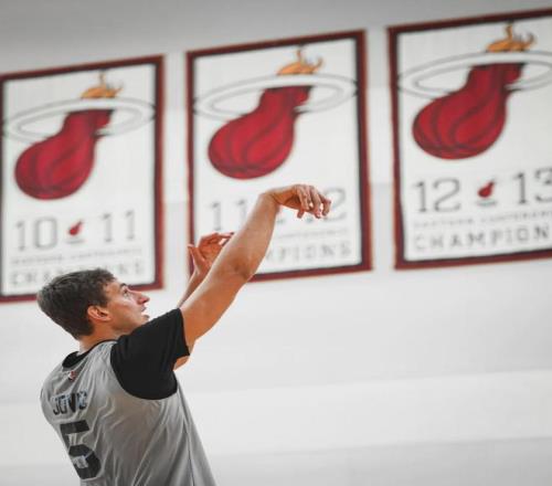 新秀賽季,約維奇遭遇背部傷病,再加上被下放到發(fā)展聯(lián)盟。當(dāng)季他在熱火只打了15場比賽,場均出戰(zhàn)13.6分鐘,得到5.5分2.1籃板0.7助攻0.5搶斷,三項命中率:40.6%,22.9%,94.7%。2023年夏天,約維奇決定苦練三分球。