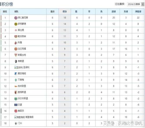 德甲最新積分榜:拜仁豪取6連勝4分領(lǐng)跑,多特戰(zhàn)平萊比錫位列第2