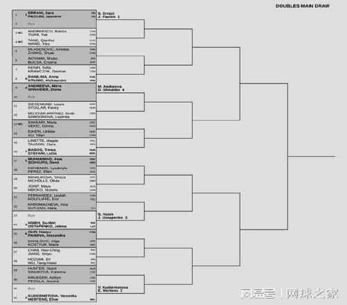 雙打簽表:安德萊斯庫(kù)/袁悅 vs 湯千慧/王曦雨、張帥/穆拉德諾維奇 vs 青山修子/布克沙、徐一璠/艾克里 vs 薩卡里/維基奇、郭涵煜/帕諾娃 vs 達(dá)尼洛維奇/科斯秋克、蔣欣玗/詹皓晴 vs 穗積繪莉/吳芳嫻。