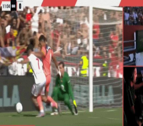 在2025-26賽季西甲第8輪,巴塞羅那客場對陣塞維利亞。阿勞霍絆人犯規(guī),主裁判回看慢鏡頭之后判罰點(diǎn)球。