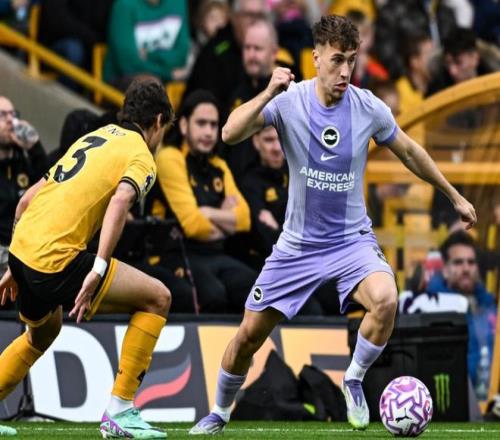 這場比賽擁有主場優(yōu)勢的狼隊率先進球。比賽第21分鐘,穆內(nèi)西在禁區(qū)內(nèi)凌空抽射,皮球被門將費布魯亨撲了一下,隨即擊中橫梁,反彈擊中費布魯亨的身體彈進球門。布萊頓也都夠倒霉了。這粒烏龍球讓布萊頓陷入了被動局面。半場結束,布萊頓0-1落后。布萊頓上半場控球率49%,7次射門,3次射正,沒能進球。而狼隊只有4次射門,進了1球。