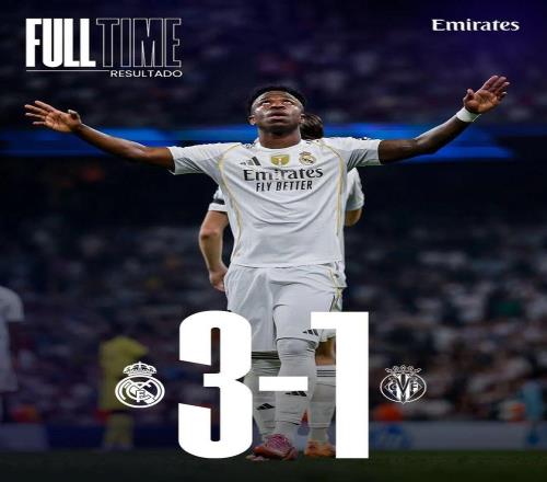 比賽結(jié)束,皇家馬德里在主場(chǎng)擊敗比利亞雷亞爾!