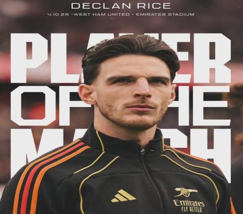 官方:賴斯被阿森納官方票選為了全場比賽最佳球員。