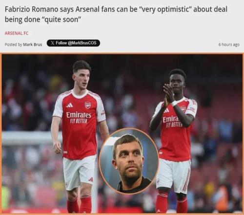羅馬諾在YouTube中表示,阿森納續(xù)約薩卡只是時間問題。