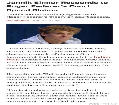 不過昨天的比賽過后,茲維列夫的一則“觀點”引發(fā)熱烈討論,起因是今年上海大師賽的場地速度有所改變。加上之前費德勒在接受羅迪克采訪時也聊到了這點,辛納就在賽后被問到對于茲維列夫的發(fā)言他怎么看,世界第二在接受采訪時坦言,事情的真相并不是如此,賽事方不可能因為想看到阿辛決就故意去改變球場原有的速度。