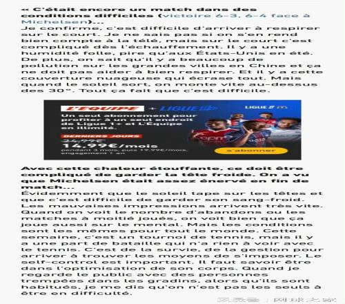 昨天,在上海大師賽第二輪以6-3 6-4擊敗米克爾森后,法國選手林德克內(nèi)希在接受《隊(duì)報(bào)》采訪時(shí)評價(jià)上海的濕熱天氣,并吐槽中國大城市污染嚴(yán)重。