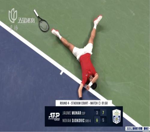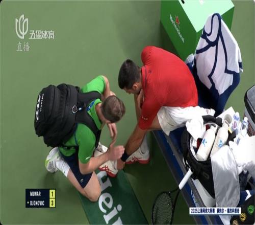 第二盤前11局,雙方互相保發(fā),來(lái)到德約非保不可的發(fā)球局,德約被穆納爾破發(fā)的瞬間,這位38歲的老將無(wú)奈躺在了地上。盤間休息,理療師上前為德約開始量血壓……雙方大比分來(lái)到1比1,對(duì)于德約而言,再打一盤簡(jiǎn)直是噩夢(mèng)……