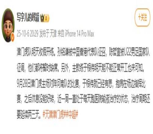 津門虎隊(duì)今天的訓(xùn)練將以恢復(fù)、調(diào)整為主,主教練于根偉能否出現(xiàn)在訓(xùn)練場(chǎng),其實(shí)也還是未知數(shù)。據(jù)了解,實(shí)際上9月28日主場(chǎng)對(duì)陣河南隊(duì)的比賽,于根偉就已經(jīng)有恙,抱病在場(chǎng)邊指揮比賽,也是因?yàn)橐恢眻?jiān)持,情況反而更加嚴(yán)重,過去一周多的假期,他一直處于每天跑醫(yī)院輸液治療的狀態(tài),治療周期到今天還沒有結(jié)束,不過他本人早些時(shí)候也表示,自己會(huì)盡量不耽誤出勤。