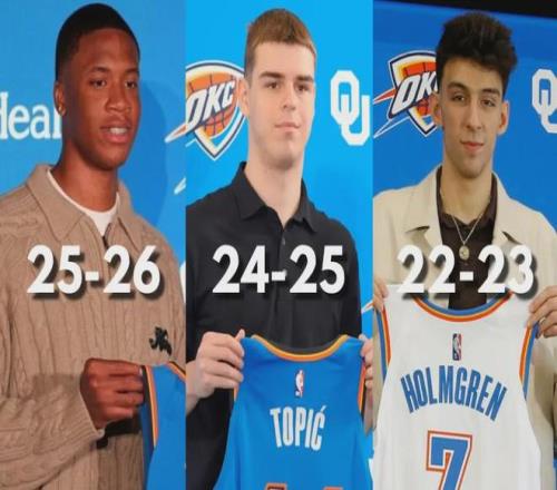 再往前看,2022年選秀大會結(jié)束后,霍姆格倫腳踝嚴(yán)重受傷,也使新秀賽季提前報銷。以前都是76人的新秀提前報銷,現(xiàn)在變成了雷霆。索伯畢竟還是一年級,托皮奇的前景不容樂觀:2026-27賽季和2027-28賽季都是球隊(duì)選項(xiàng)。