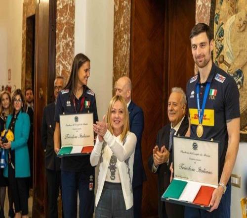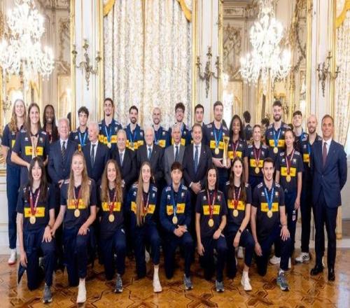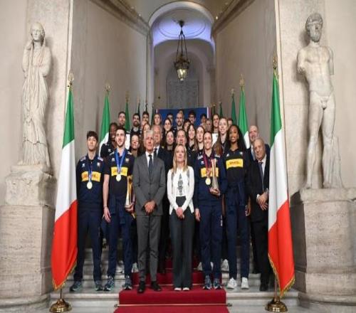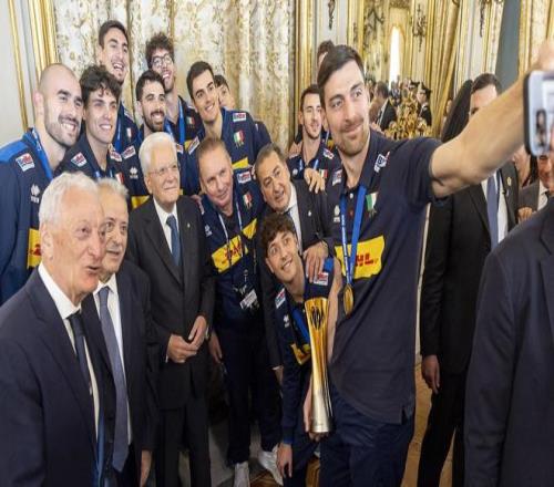10月9日,據(jù)外媒報道,意大利國家排球隊(duì)在奎里納勒宮與塞爾吉奧-馬塔雷拉總統(tǒng)和喬治婭-梅洛尼總理共同慶祝他們的世界冠軍勝利。