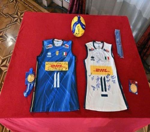 男女排世錦賽冠軍意大利隊(duì)接受總統(tǒng)、總理接見,并贈送球衣