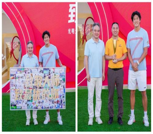 活動(dòng)現(xiàn)場(chǎng),張之臻動(dòng)情回憶這段特殊情誼:“我從小喝光明牛奶長(zhǎng)大,2023年開始以‘鮮活大使’身份和光明并肩,親眼看到品牌對(duì)網(wǎng)球事業(yè)的支持越來(lái)越深入,特別自豪。”為致敬這段跨界攜手,黃黎明為其送上精心定制的“時(shí)光回顧照片框”,收錄雙方合作以來(lái)的珍貴瞬間;張之臻則回贈(zèng)2025大師杯簽名相框,讓這份“雙向奔赴”的品牌佳話再添溫暖注腳。