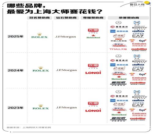 同樣引人注目的是上海大師賽。作為中國(guó)賽季另一場(chǎng)重頭戲,該賽事共吸引46家贊助商支持,在全部9站ATP1000大師賽中贊助商數(shù)量高居榜首。除了長(zhǎng)期擔(dān)任冠名贊助商的勞力士,意圖強(qiáng)化本土客戶形象的摩根大通,光明乳業(yè)和喜力一同分享了第三級(jí)贊助商的位置。其中,光明乳業(yè)成為該賽事中贊助等級(jí)最高的本土品牌。