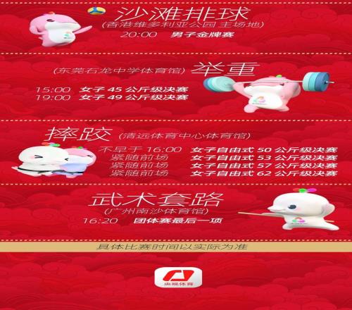 乒乓球成年組混雙金牌11月14日產(chǎn)生,男、女單打金牌11月16日產(chǎn)生。期待!