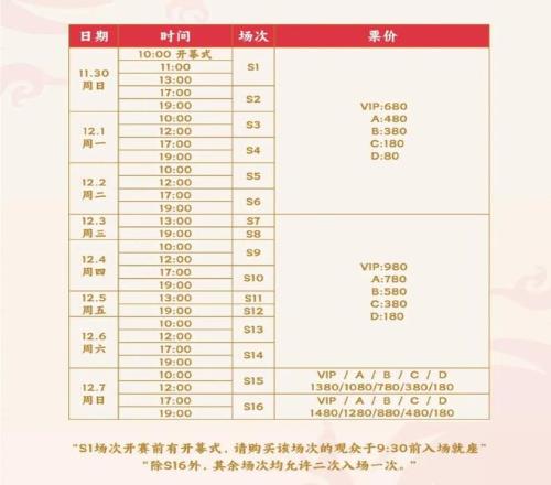 【單場(chǎng)次票價(jià)】80元-1480元不等