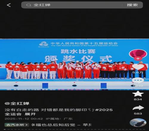 今天(11月12日)凌晨,全紅嬋在社交媒體平臺上曬出多張十五運會現(xiàn)場照片,其中包括她和隊友合影、頒獎儀式以及大量全運會個人花絮內(nèi)容。