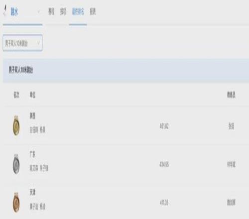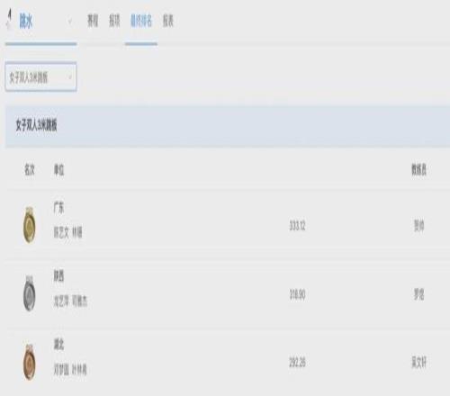 11月6日晚,十五運會跳水項目女子雙人10米跳臺決賽在廣東舉行。陳芋汐/掌敏潔奪冠。廣東隊全紅嬋/王偉瑩以311.76分成績,獲得第5。