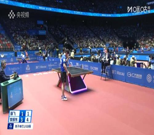 第4局,背水一戰(zhàn)的薛飛在4-7落后的情況下連拿6分,10-7手握3個(gè)局點(diǎn)。樊振東連得3分追平,但隨后薛飛再得2分,12-10贏下了第4局。