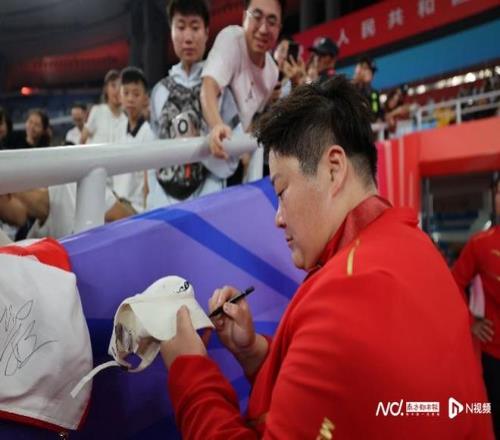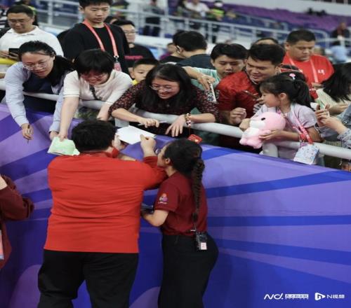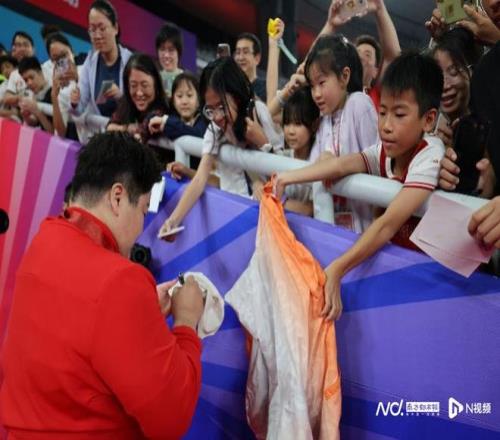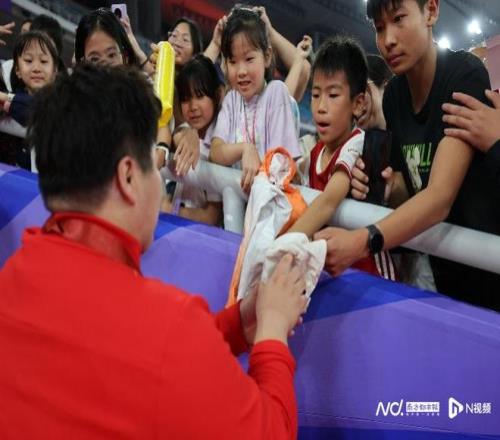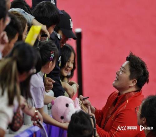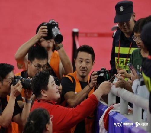作為當晚最重磅的明星選手,在頒獎禮后,鞏立姣與看臺上諸多粉絲親密互動,對孩子們提出的簽名要求各種滿足。