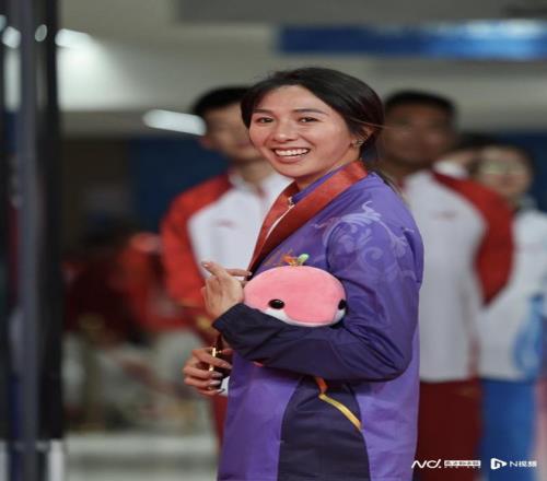 掛上十五運(yùn)會田徑增設(shè)小項金牌,林雨薇、葛曼棋笑靨如花